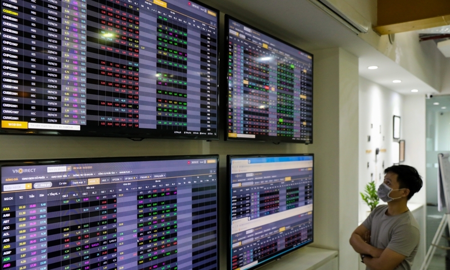 Nhà đầu tư quan sát bảng giá trực tuyến của các công ty chứng khoán. Ảnh: Quỳnh Trân.