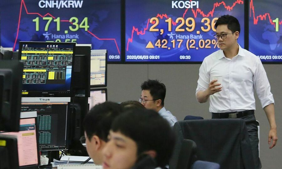 Tại Châu Á do Covid-19 kiểm soát, các thị trường Trung Quốc, Nhật Bản và Hàn Quốc đều đang phát triển. Sau khi Chính phủ Hàn Quốc thông báo sẽ tăng ngân sách thêm 28,9 tỷ USD (lần thứ ba trong năm nay) để giảm bớt tác động của đại dịch cúm, chỉ số Kospi (Hàn Quốc) đã đóng cửa tăng 2,9%. -Chiều nay, chứng khoán Hàn Quốc dẫn đầu mức tăng tại khu vực Châu Á – Thái Bình Dương. Ảnh: Associated Press-Hang Seng Index (Hồng Kông) tăng 1,3%. Chỉ số Shanghai Composite tăng 0,2%. Chỉ số Nikkei 225 (Nhật Bản) tăng 1,3%. Các chỉ số chính của châu Á chỉ thấp hơn mức cao nhất của năm nay khoảng 5-6%.