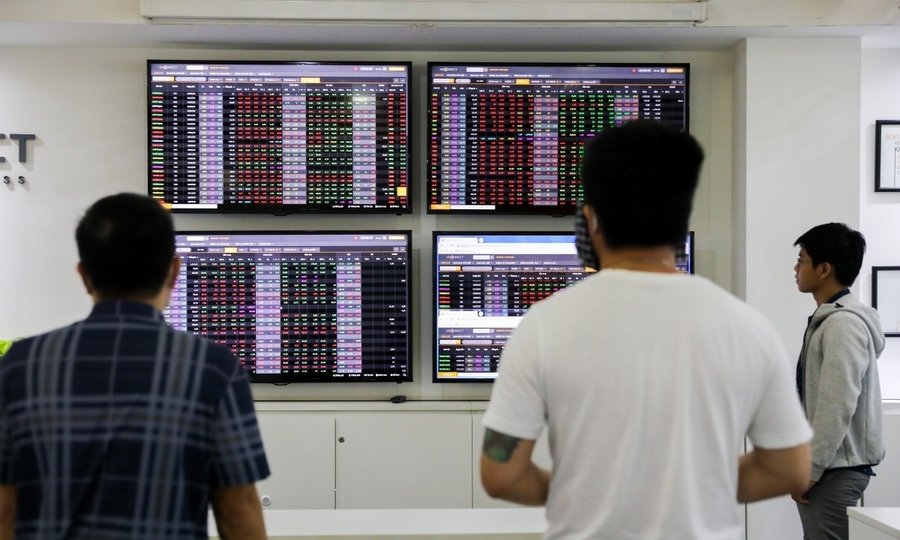 Các nhà đầu tư cá nhân quan sát bảng giá của các công ty chứng khoán: Quỳnh Trần .