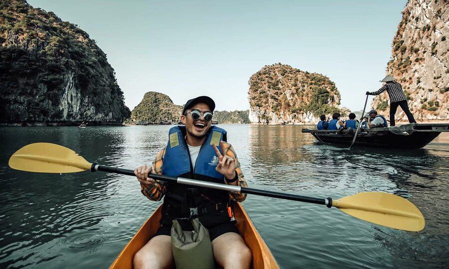 Blog du lịch Lý Thành Cơ thích trải nghiệm các hoạt động du lịch khác nhau, kể cả du lịch yêu cầu sức khỏe tốt, chẳng hạn như đi bộ đường dài, lặn biển và chèo thuyền kayak. Vì vậy, anh rất chú trọng đến việc tăng cường sức khỏe của mình. Ảnh: FBNV-ăn no nê, chất-lượng-với nhiều người, Lý Thành Cơ nhận ra hai trường hợp đi du lịch là ăn quá nhiều và ăn ít.