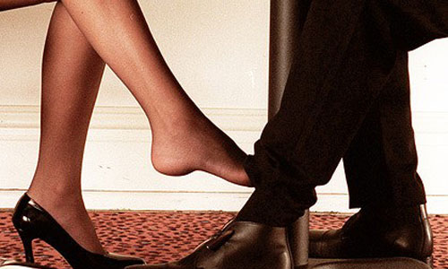 Nhiều cặp đôi thường tán tỉnh dưới bàn, nhưng xin hãy nhớ rằng tất cả các động tác đáng yêu của bạn đều có thể thu hút sự chú ý. Các khách hàng khác. Ảnh: Skynet Eyes.