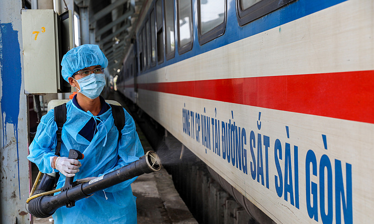 Tàu thường phun thuốc khử trùng khi dừng qua đêm. Nhiếp ảnh: Quỳnh Trân