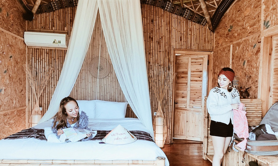 Khu nghỉ dưỡng có khoảng 49 phòng, có thể ở 4 hoặc 2 người, giá khởi điểm từ 500.000 đồng. Trước mặt resort là khung cảnh 3 mặt là núi nên khi thức dậy bạn có thể mở rèm trước cửa và tận hưởng không khí sảng khoái nơi đây.