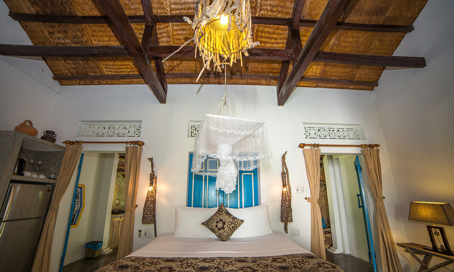Ngoài màu trắng chủ đạo tạo nên màu sắc trang nhã, gia chủ còn làm nổi bật màu vàng của gỗ, tre, nứa, cây xanh tự nhiên. Bạn có thể chọn biệt thự coco với mái tranh hoặc biệt thự nằm tách biệt bên bờ biển với cửa xanh. Bang Retreat, phong cách đơn giản với khu vườn rộng hoặc nhà cá heo. Giá của một đêm lưu trú là khoảng US $ 100.