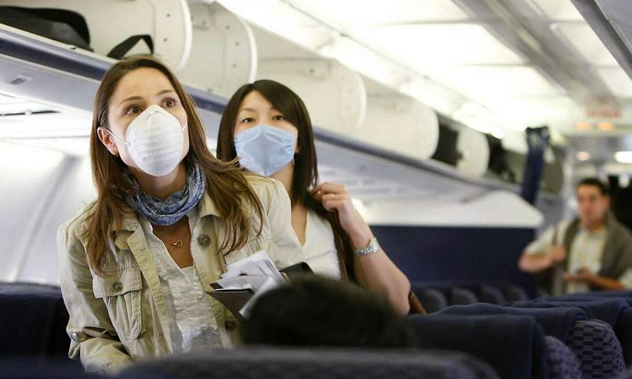 – Việc đeo khẩu trang là điều cần thiết để ngăn chặn dịch bệnh tấn công. Ảnh: Julio Cortez / Chronicles-Những khách du lịch trang điểm cảm thấy rất khó chịu khi đeo khẩu trang trong chuyến bay. Một số người quay video trang điểm trên YouTube chia sẻ phương pháp sử dụng phấn phủ trên một lớp kem dưỡng ẩm nhẹ để ngăn lượng ẩm dư thừa từ mặt nạ rơi ra khỏi lớp trang điểm.