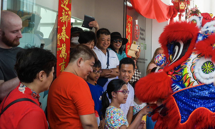 Người Singapore nhìn vào Dance Lion để ăn mừng Tết Nguyên đán. Ảnh: STB