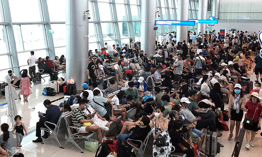 Nhà ga của sân bay quốc tế Phú Quốc có rất nhiều hành khách – điều này thường xảy ra sau một thời gian Chia ly xã hội. Ảnh: Anh Tu .