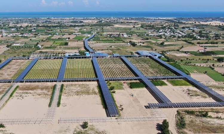 Một trang trại nông nghiệp ở Ninh Thuận đã lắp đặt một hệ thống năng lượng mặt trời. Ảnh: Anh Minh.