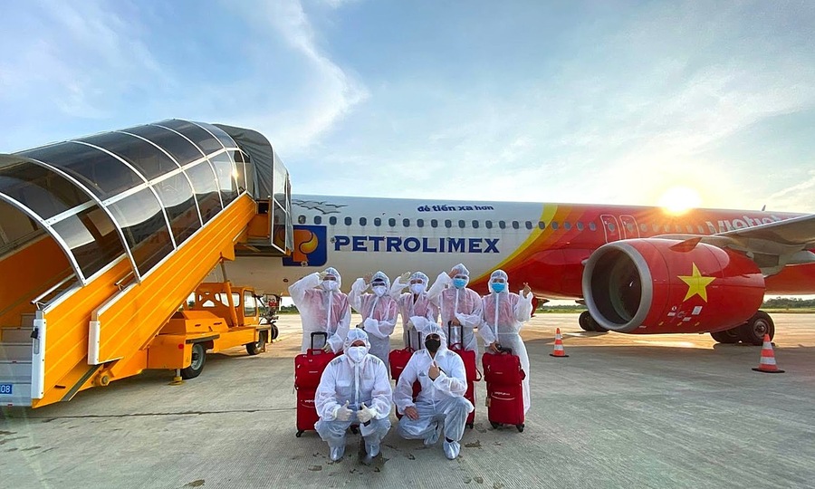 Cuối tháng 7, Vietjet đã hồi hương an toàn gần 10.000 người Việt Nam sang Nhật Bản, Hàn Quốc, Thái Lan, Singapore, Đài Loan (Trung Quốc), Sri Lanka, Bangladesh, Philippines, Brunei, Indonesia và Myanmar. -Ngoài ra, hãng cũng đang hợp tác chặt chẽ với chính quyền trong việc phòng ngừa và kiểm soát dịch bệnh. Tiếp viên của Vietjet sẵn sàng lên đường sau khi họ hoàn thành nhiệm vụ.