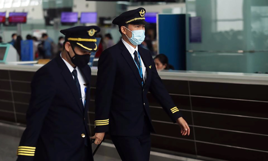 Phi công Vietnam Airlines tại sân bay Nội Bài. Ảnh: Gia Chinh .