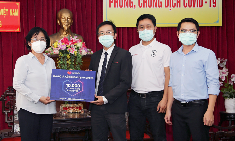 Thông qua các nguồn lực, hoạt động và kênh truyền thông trên nền tảng Lazada, chúng tôi cùng kêu gọi cộng đồng và mọi người dân thực hiện đầy đủ các biện pháp phòng, chống dịch bệnh và thiết lập lối sống thích ứng. Xây dựng thói quen lành mạnh cùng tồn tại với dịch bệnh, thiết lập cuộc sống mới, chống dịch có hiệu quả, khôi phục và phát triển kinh tế. Bên cạnh đó, bằng cách lan tỏa thông điệp đoàn kết, kêu gọi hành động, lan tỏa tình yêu thương trong cộng đồng, những nhóm yếu thế trong xã hội, chúng ta hãy đồng lòng chống lại dịch bệnh trong toàn xã hội. Lần này, Lazada Việt Nam trao tặng 10.000 bộ quần áo bảo hộ y tế cho Ban Chỉ huy Tiền phương Tổ quốc Đà Nẵng để hỗ trợ các bác sĩ, chiến sĩ tuyến đầu chống dịch trên địa bàn thành phố. Đà Nẵng sẽ trao toàn bộ 10.000 bộ quân phục trị giá 1,6 tỷ đồng cho Ủy ban Mặt trận Tổ quốc Việt Nam để hỗ trợ các bác sĩ, chiến sĩ tuyến đầu chống dịch. Nang .