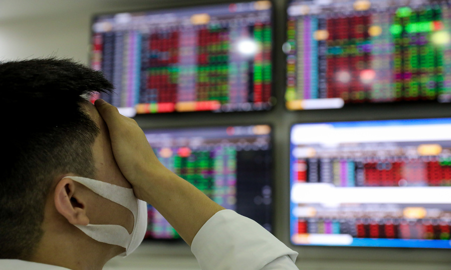 Các nhà đầu tư đã kiểm tra hình ảnh bảng giá của một công ty chứng khoán tại thành phố Hồ Chí Minh vào tháng 3: Quỳnh Trần.